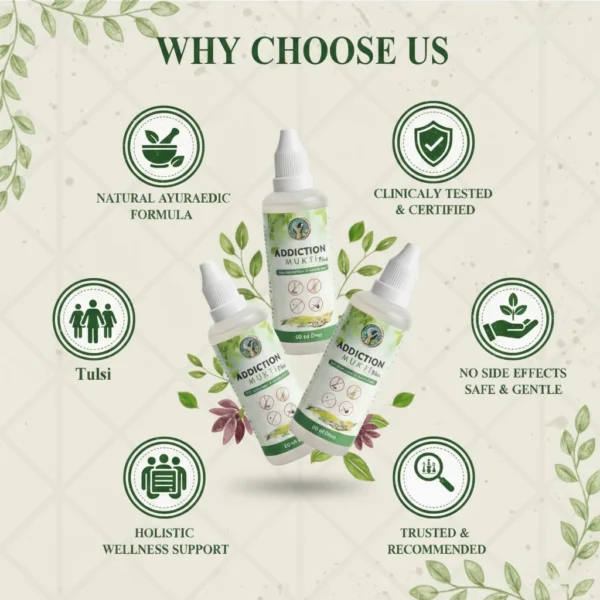 Addiction Mukti Drops help you reclaim your life by supporting the body and mind through a natural, herbal approach—paving the way for a healthier, addiction-free future.