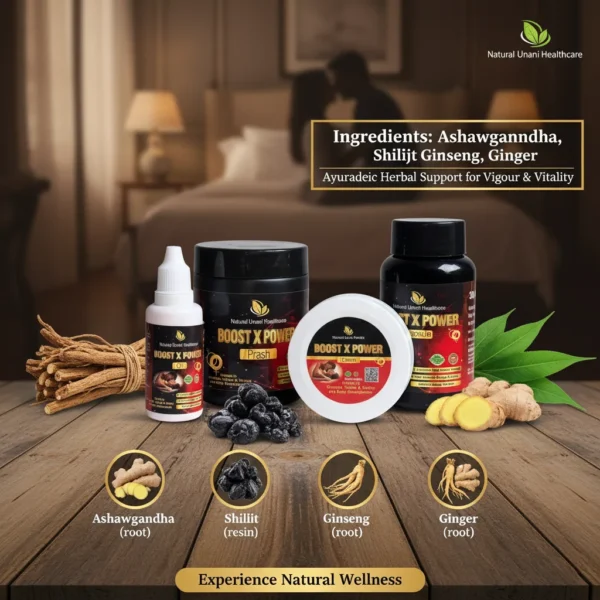 Unlock your full potential with the Boost X Power Kit, a holistic set of Ayurvedic and Unani remedies designed to enhance men’s stamina, power, and performance. This complete wellness kit targets internal health, physical endurance, and overall vitality using natural, safe, and herbal formulations.