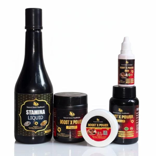 Rediscover vitality naturally with the Boost X Power Complete Pack, a comprehensive Ayurvedic and Unani wellness kit designed for men’s stamina, performance, and overall health. This all-in-one combo supports both internal and external nourishment, helping you regain energy, boost strength, and enhance confidence.
