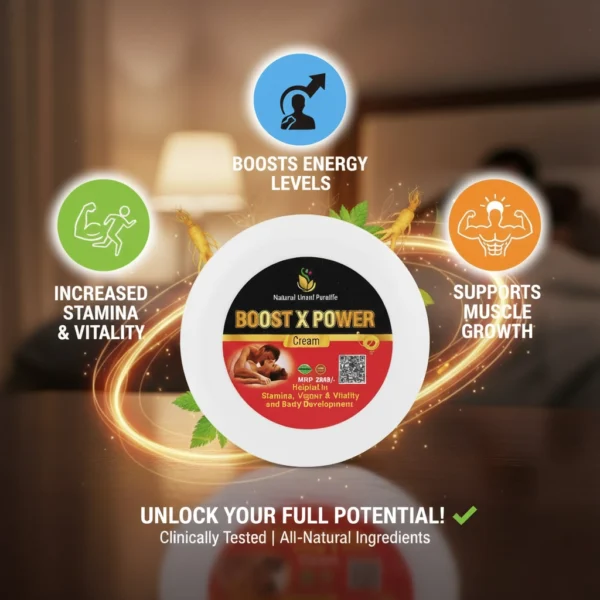 Boost X Power Cream is a specially formulated Ayurvedic topical solution designed to support stamina, vigour, vitality, and overall body development. Enriched with 100% herbal ingredients, this cream is ideal for external use to enhance male performance, increase endurance, and promote sensual confidence naturally.