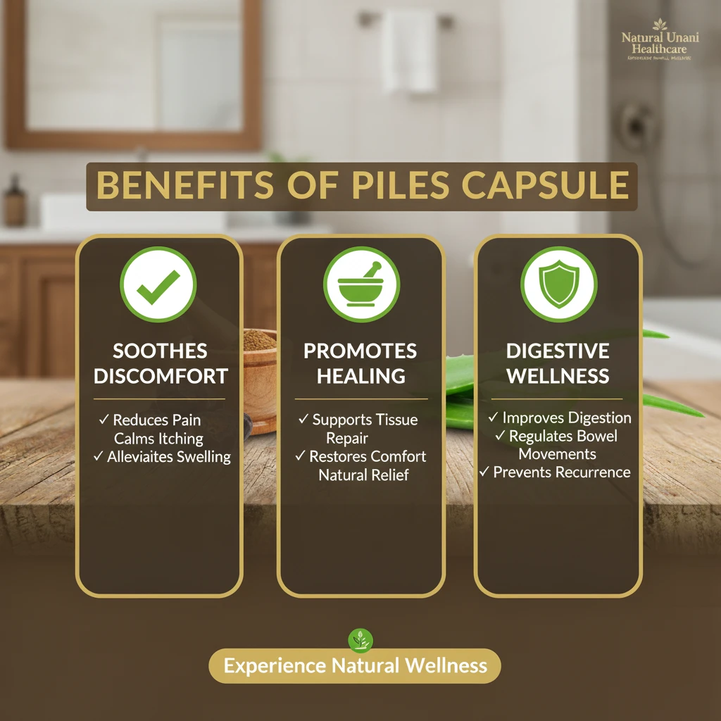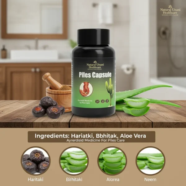 Find gentle, effective, and natural relief with Piles Capsule, a trusted Ayurvedic formula by Natural Unani Healthcare. This herbal supplement helps reduce pain, itching, and swelling caused by piles, while supporting healthy digestion and preventing recurrence. It’s a safe and natural way to promote long-term comfort and digestive wellness.