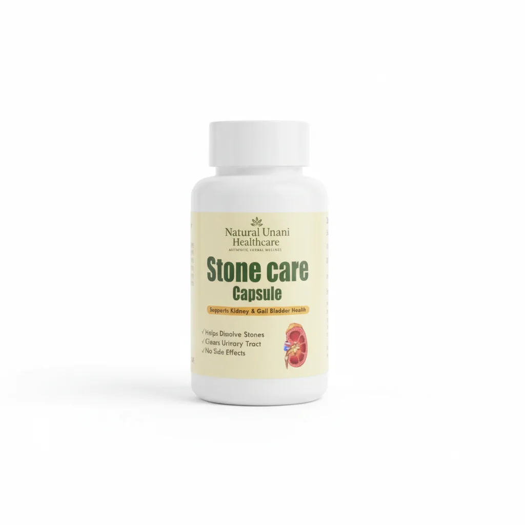 Keep your kidneys healthy and free from discomfort with Stone Care Capsule, a potent Unani herbal formula designed to help dissolve kidney and gall bladder stones naturally. This gentle yet effective supplement supports urinary tract cleansing, promotes detoxification, and helps maintain optimal kidney function — all without side effects.