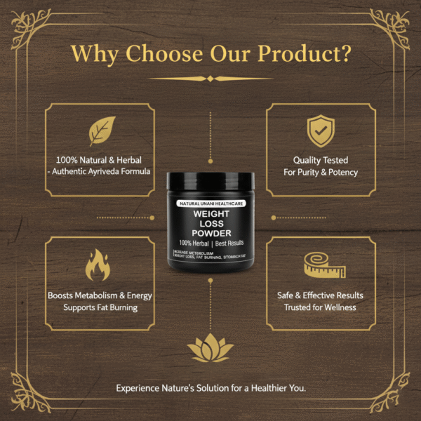 I was hesitant about trying a herbal weight-loss supplement, but Natural Unani Healthcare’s Weight Loss Powder impressed me. My weight is gradually reducing, and my energy is more stable.
